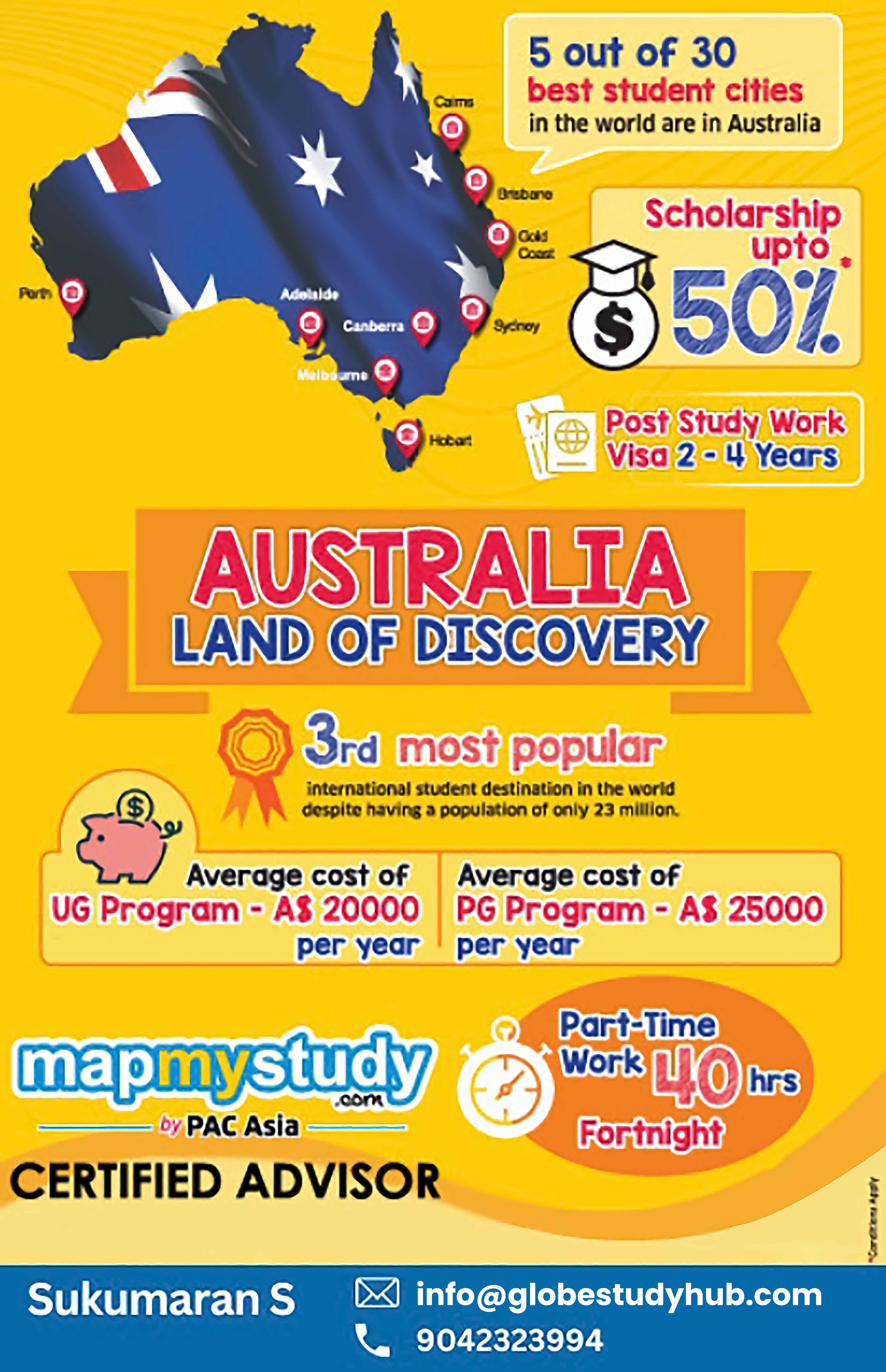 SCHOLARSHIP UPTO: 50% Post Study Work Visa 2-4 Yrs